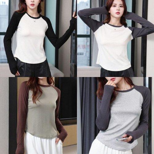 [다잇템]여성 롱슬리브 콘트라스트 라글란 티셔츠