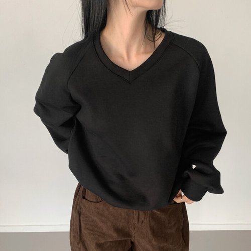 [옷자락] 여자 오버핏 나그랑 속기모 루즈 무지 브이넥 맨투맨