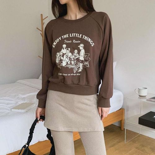 [옷자락] 여성 면혼방 프린팅 절개 나그랑 긴팔 맨투맨