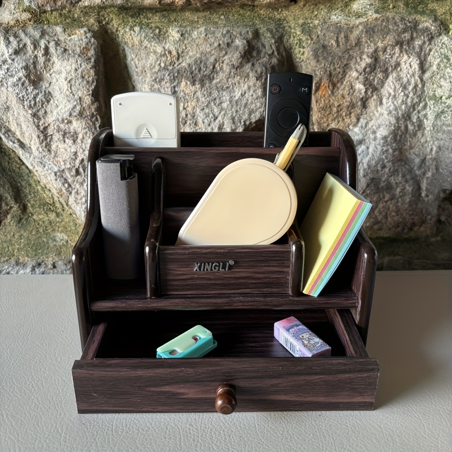 TEMU 빈티지 크리에이티브 나무 책상 수납 선반 - 다기능 필통, 리모컨 보관함, 가정용 침실 메이크업 선물 (친구 및 가족용)