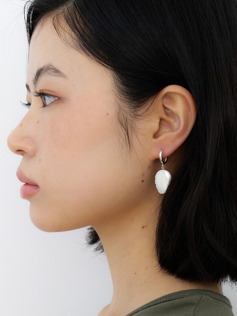 [지지] 나뭇잎 리프 자개 원터치 이어링 화이트