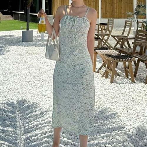 [셀럽하우스]플라워 VKZT5676 인기 여성 끈나시 롱원피스 감성 1P 여름 여행