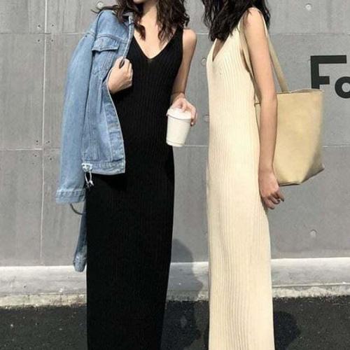 [셀럽하우스]끈나시 DDRR5042 뷔스티에 롱원피스 LLD153 니트 원피스 드레스