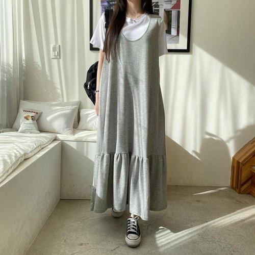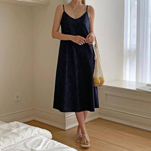 하객 롱니트 데님 쉬폰 뷔스티에 온나핏 민소매 WFKOIHP