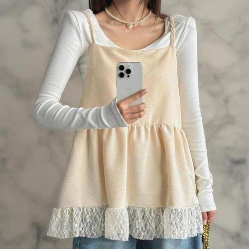 [다잇템_패션]여성 끈 코르셋 프릴 레이스 백리스 나시