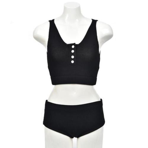 [다잇템]여자 하이웨스트 단추 포인트 나시 크롭 수영복