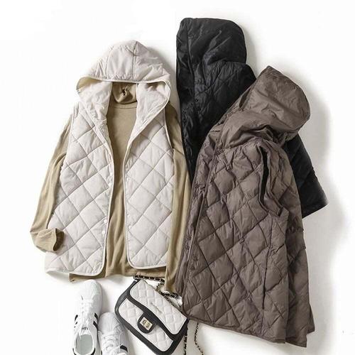 [셀럽하우스]경량 OVEC1714 패딩조끼 따뜻한 후드 베스트 루즈 민소매 코트