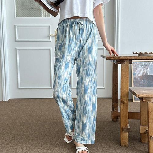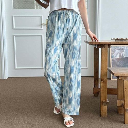 [셀럽하우스]여자 TLTZ6651 여름 스타일 나염 밴딩 통바지 고품질 데일리 홈