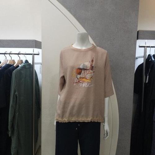 스테파니 DP01 드로잉 나염 7부 티블라우스 A24TS4310