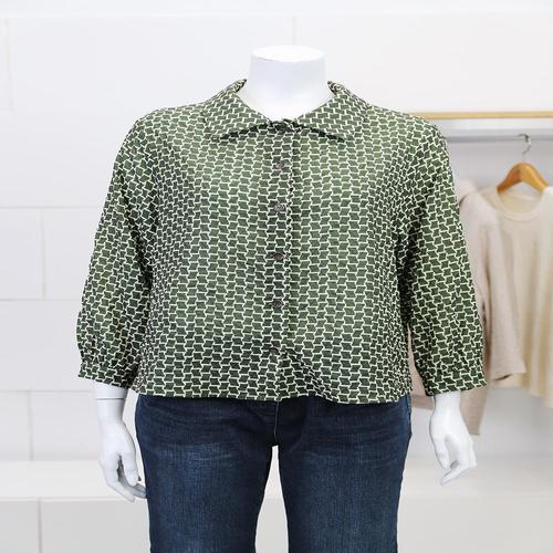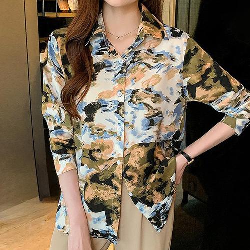 [퀸이즈] 포다 컬러 나염 카라 셔츠 블라우스