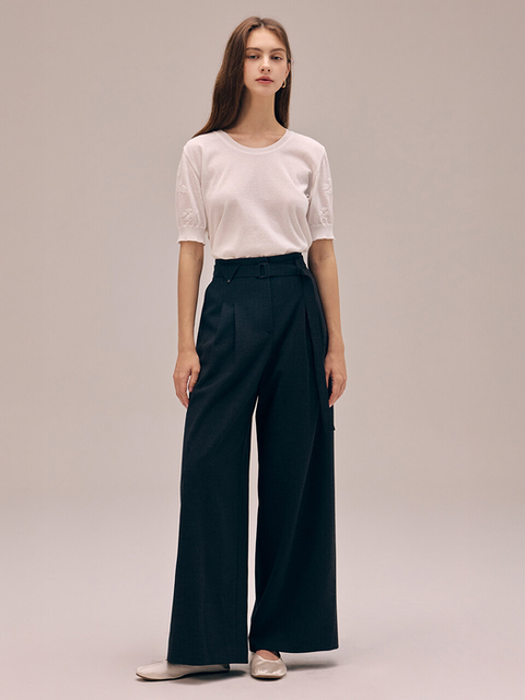 [나이스클랍] N252MWP402 투턱 와이드 팬츠 다크네이비