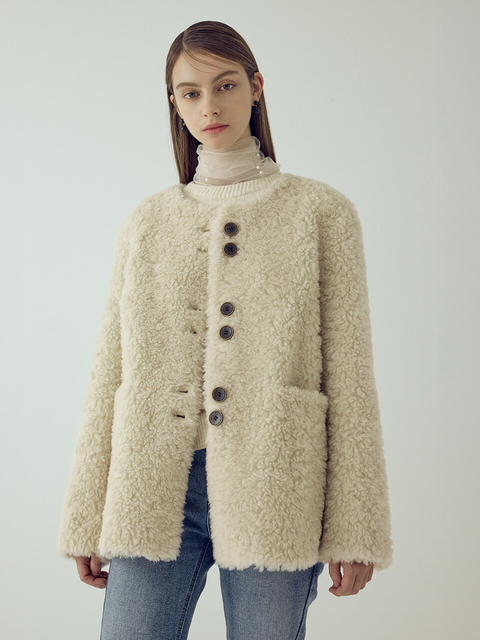 [보니스팍스] 클래식 더블 버튼 크롭 무스탕 자켓 (XPAJK007M0)
