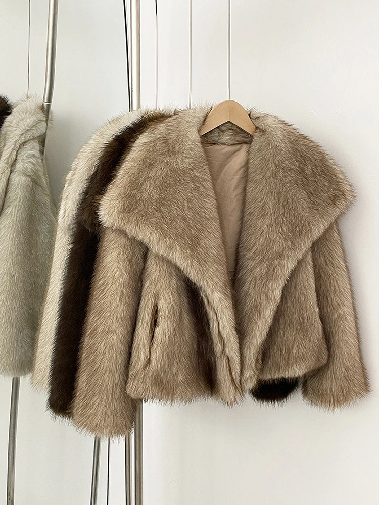 Aynaray 2025 가을 겨울 여성 가짜 모피 자켓 솔리드 카키 긴 소매 두꺼운 따뜻한 아웃웨어 여성용 여성용 푹신한 코트