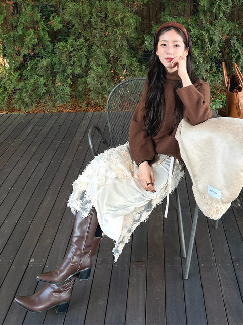 [나이스클랍] 나이스클랍 뒷 트임 롱 니트 스커트 N243PWK817