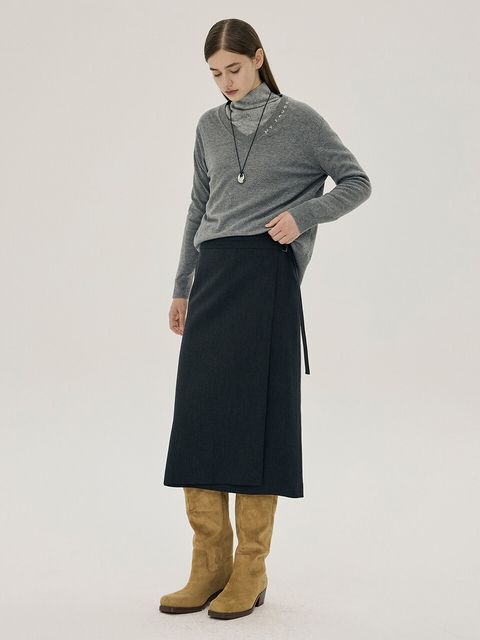 [나이스클랍]니트 블록 훌 스커트 N234MWS910_DG