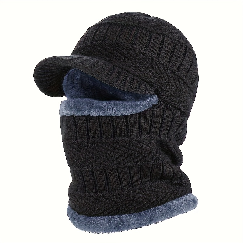 TEMU 1개 남성용 겨울 따뜻한 모자 및 스카프 세트, 기모 안감의 두꺼운 비니, 골지 디자인 및 부드러운 기모 안감, 스포티 스타일, 스키 및 추운 날씨 착용에 이상적, 스키 마스크, 통합 미튼, 겨울 모자 및 스카프 세트, 모자 스카프 및 장갑 세트, 모자 및 장갑 세트