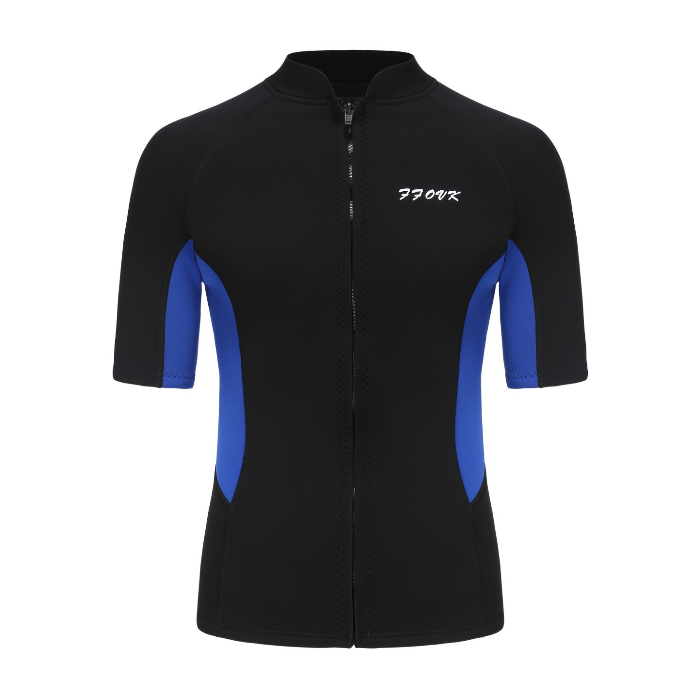 TEMU 남성용 웨트슈트 탑, 3mm 네오프렌 재킷 전면 지퍼 짧은 소매 수영 서핑 워터 스포츠용, 중간 신축성 두꺼운 보온 블루 + 블랙 아우터 레이어