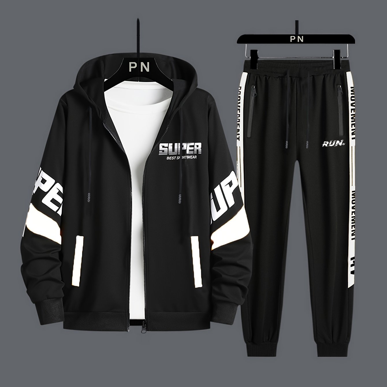 2025 남성 스포츠웨어 세트: 캐주얼 후드 지퍼 가디건 + 롱 팬츠 투피스 가을 겨울 야외 조깅복