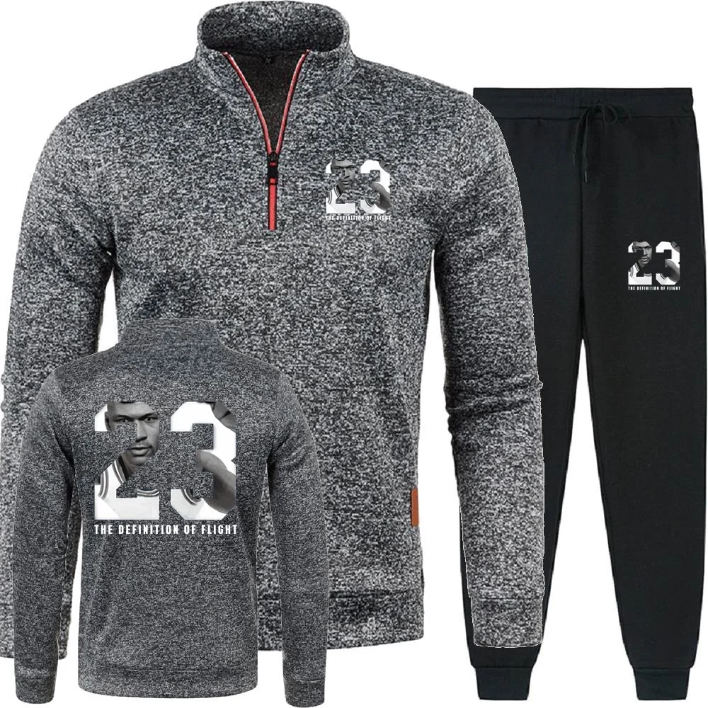 청소년 23 # 농구 선수 남성 2피스 세트 후드티 바지 두 조각 세트 스웨트셔츠 반지퍼 부드러운 플리스 터틀넥 스웨터