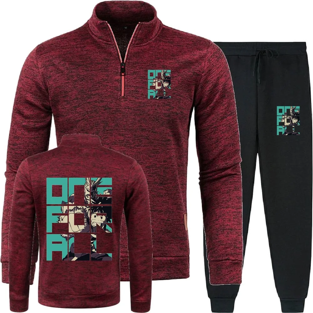 미도리야 이즈쿠 마이 히어로 아카데미아 원 포 올 남성 후드티 바지 투피스 세트 스웨트셔츠 하프 지퍼 소프트 플리스 터틀넥