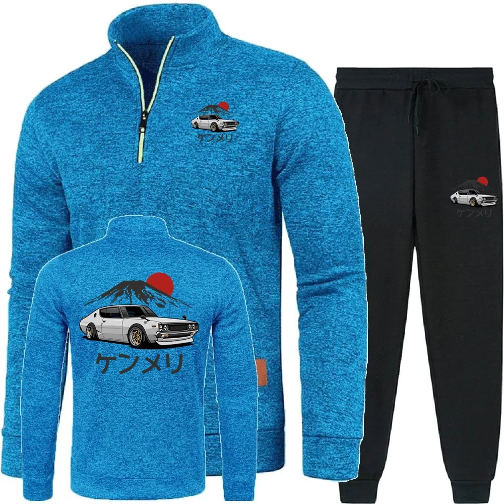자동차 그래픽 일본 자동차 청소년 남성 2피스 세트 후드티 바지 스웨트셔츠 하프 지퍼 소프트 플리스 터틀넥 스웨터 남성 풀오버