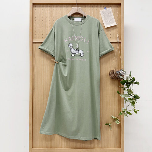 미즈큐즈 / 원단좋은 나이몰리 강아지 프린트 루즈핏 반팔 롱원피