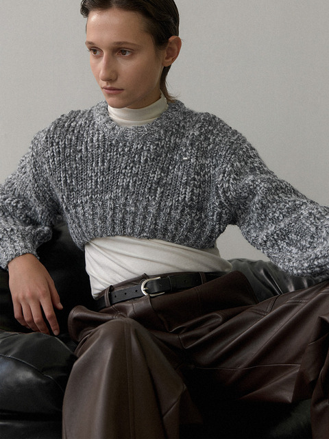 [아틀리에 나인] 볼륨 믹스 컬러 크롭 니트(T-6961)