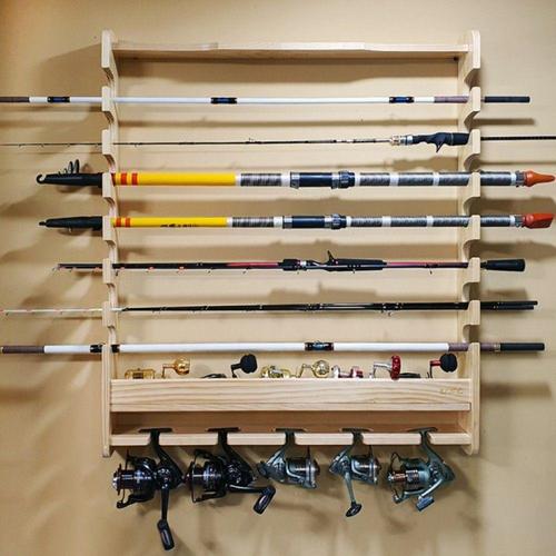 원목 낚시대 벽걸이 거치대 베이트 스피닝릴 정리함 WFKOER6
