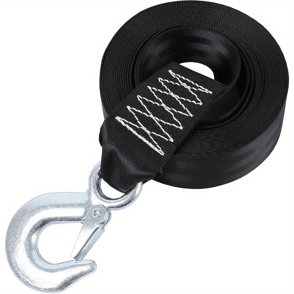 TEMU GMMLAIJH 2" x 20ft 보트 윈치 스트랩 안전 스냅 후크 포함 - 10000파운드 견인 용량, 포인트, 베이스, 낚시 보트, ATV, 파워보트, 카약용 내구성 있는 블랙 폴리에스터 로프 - 차량 및 액세서리용 안전한 견인 로프, 튼튼한 금속 후크, 고강도 소재