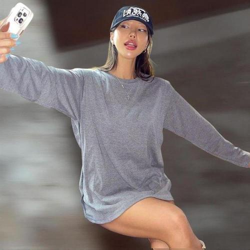 [신상오픈런]여자 루즈핏 날개 롱슬리브 힙커버 라운드 무지 티셔츠