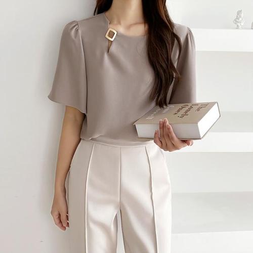 [모리스커밍홈][한정수량/특가] 골드 스퀘어 날개소매 반팔 블라우스_M2404BL902B