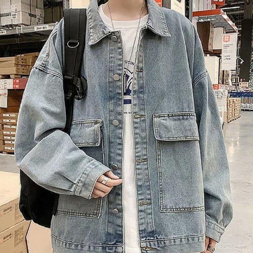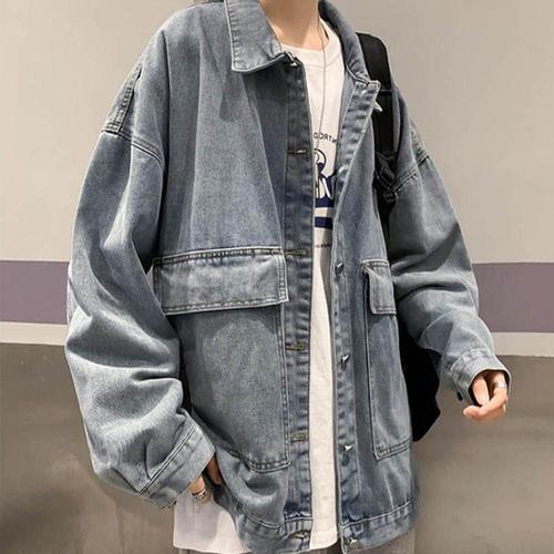 WEIHAN 남성 여성 춘추 루즈핏 오버핏 데님자켓 청자켓 캐주얼 패션 간절기 아우터