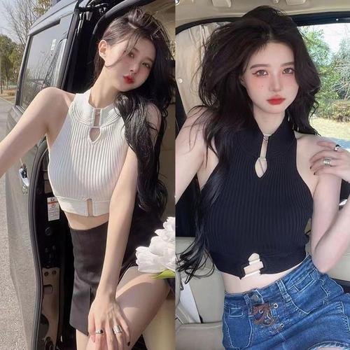 [셀럽하우스]홀링듀홀터탑 HNZH0797 크롭 포인트 트임 민소매 여름 니트 남