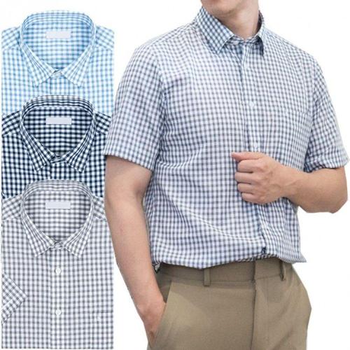 구김적은 린넨스타일 시원한 통풍 체크 반팔와이셔츠 W8DDD77