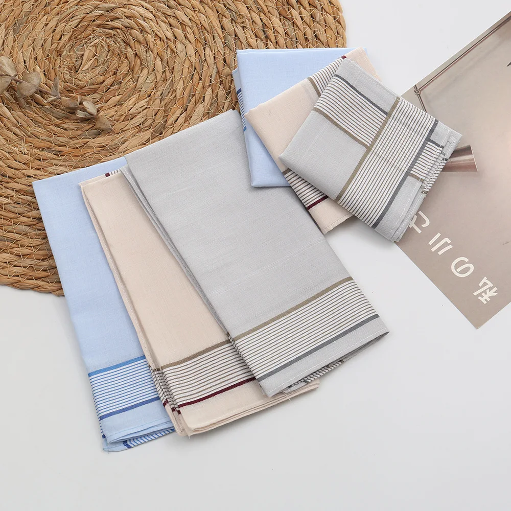 3Pcs 남성용 순수 코튼 손수건 코튼 원사 염색 손수건 구식 향수 휴대용 물 흡수 땀 수건