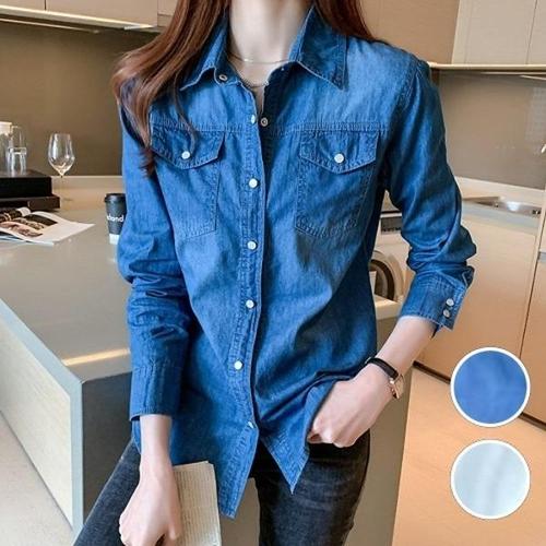 [엄지척]청남방 주머니배색 데님셔츠 G125602 셔츠 여성남방_19650864_667501