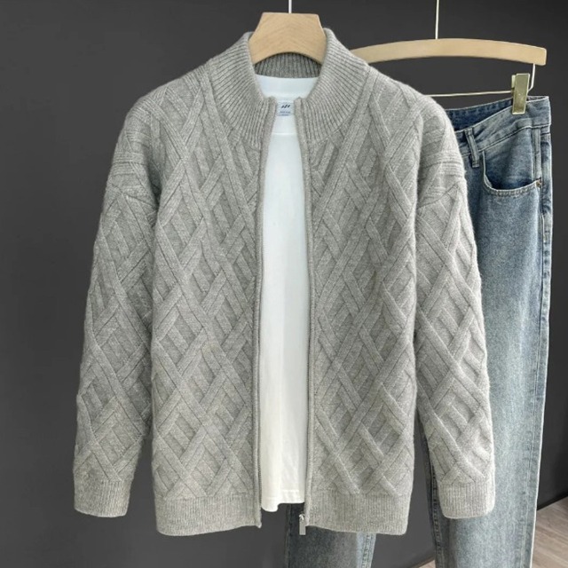 가을 겨울 남성 루즈 캐주얼 니트 스웨터 지퍼 세미 하이넥 긴팔 가디건 편안하고 따뜻한 패션 상의