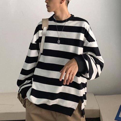 TKX 남성 데일리 스트라이프 루즈핏 긴팔 맨투맨 티셔츠 가을 겨울 패션 라운드 K51