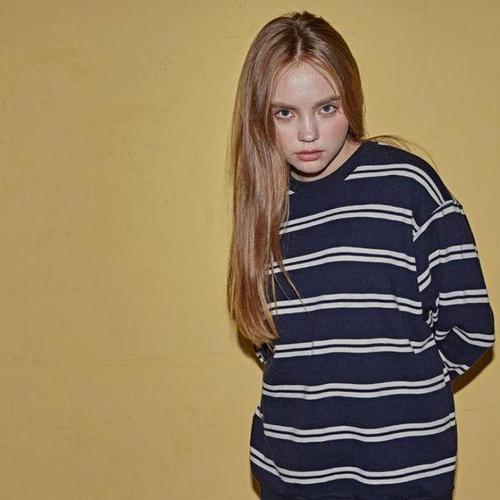[블랙퀸] 스트라이프 배색 맨투맨티 blk003986