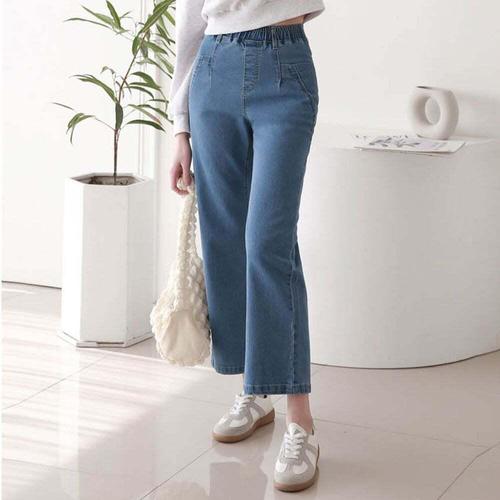 [셀럽하우스]절개 VAJA8192 부츠컷 허리밴딩 통바지 캐주얼 데님팬츠