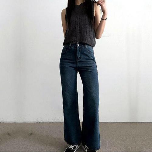 [셀럽하우스]스트레이트 JQMN2828 와이드 세미 진청데님 부츠컷 진 키작녀청