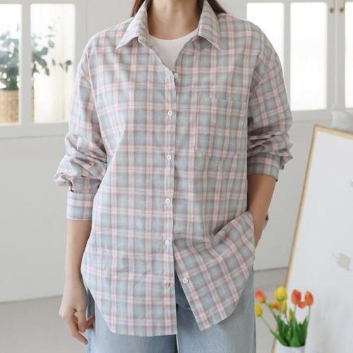 [아이우먼]믹스체크코튼카라남방 WBU155M603 빅사이즈