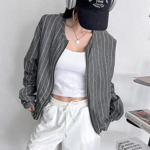 [옷자락]여자 남자 시어서커 스트라이프 집업 스트링 봄 자켓
