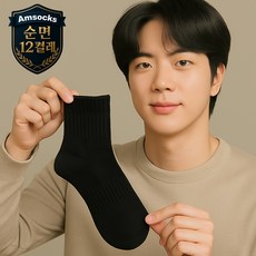 에이엠삭스 남성용 여성용 남녀공용 순면 사계절 베이직 단목 양말 12켤레 무지 흰양말