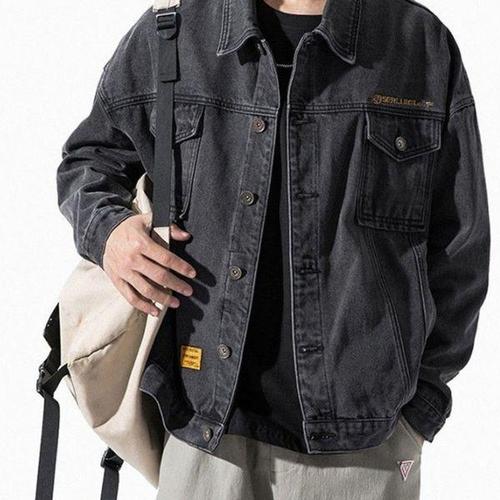 COSYEVNO 남성 청자켓 봄 슬림 캐주얼 복고풍 스탠드넥 카고 데님 코트
