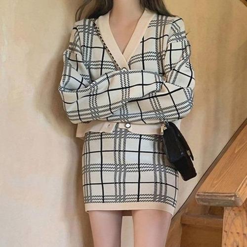 [엄지척]체크패턴 니트 가디건코디 밴딩 스커트 항아리_19679366_667501