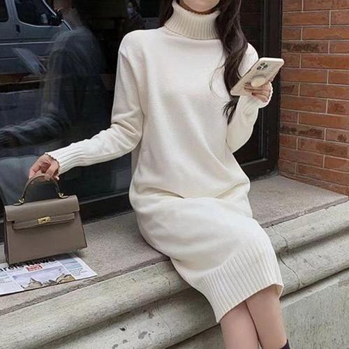 [룽스]에꼴 목폴라 니트 원피스 치마 겨울 긴팔 보온