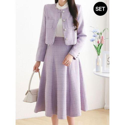 [모리스커밍홈]노카라 트위드 자켓 플레어 스커트 2종세트_M2602SE601A