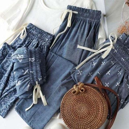 [셀럽하우스]밴딩 NKRJ4766 청바지 03데님쿨팬츠-레터링 얇은 여름 홈웨어