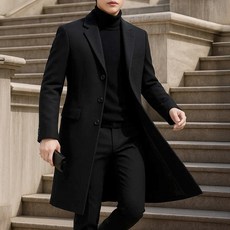 BIKASU 남자 고급 케쥬얼 롱 코트 빅사이즈 정장넥 울코트